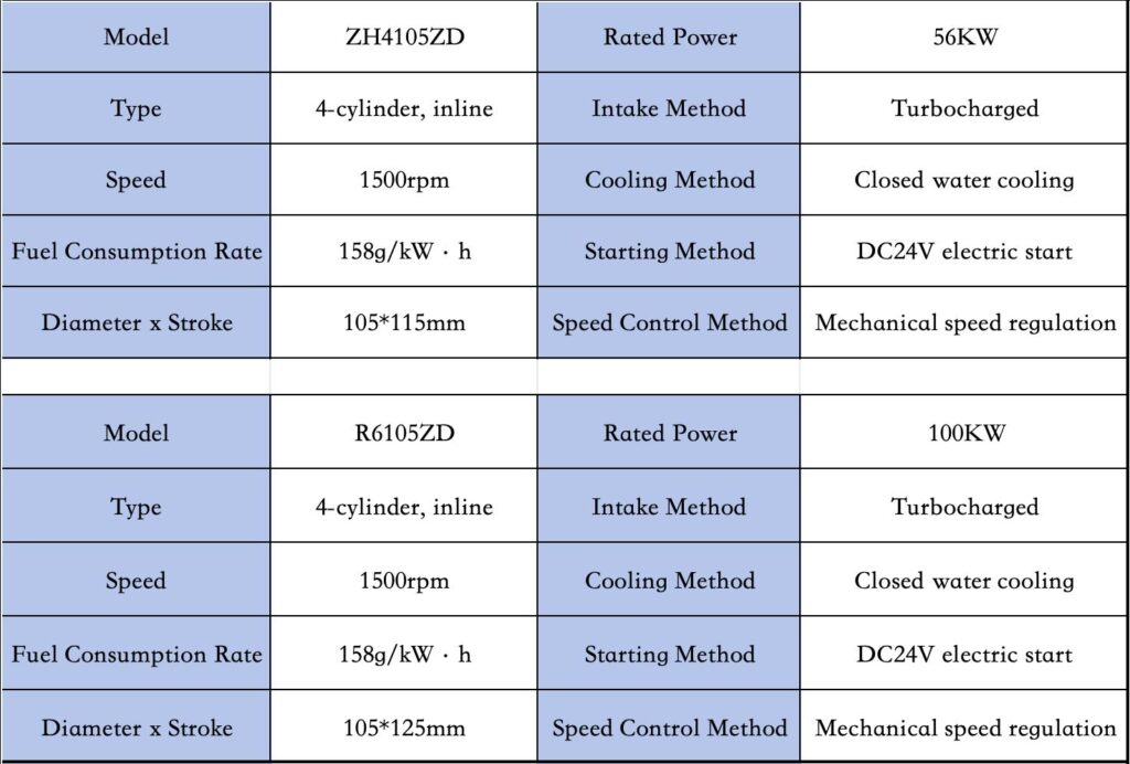 Below, we introduce two Leina diesel engine models: ZH4105ZD and R6105ZD.